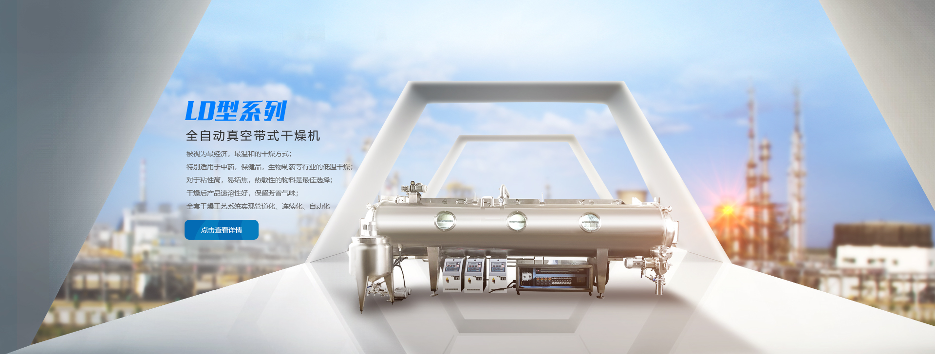 主要研發(fā)和生產(chǎn)具有自主知識產(chǎn)權(quán)的中藥提取濃縮成套設(shè)備、中藥浸膏低溫真空帶式連續(xù)干燥機等產(chǎn)品